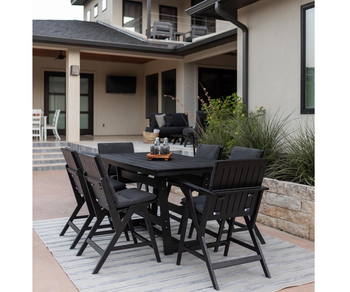 • Marine Grade Poly (MGP) furniture is crafted from molded polyethylene, making it resistant to the elements, including UV rays, moisture, and extreme temperatures
