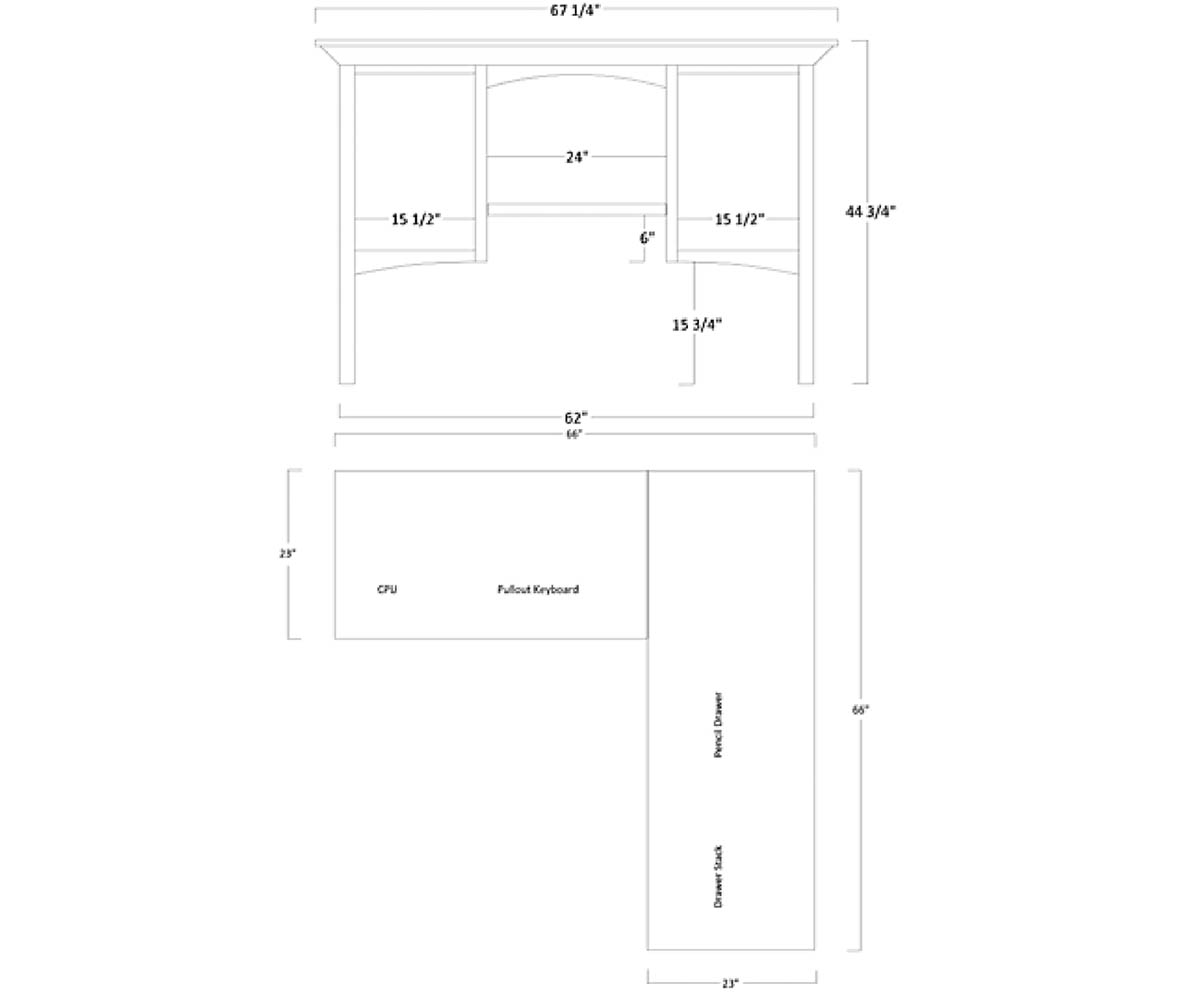 Hutch: 67½”W x 14¾”D x 45″H